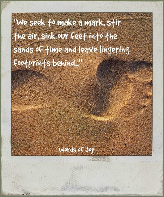 We seek to make a mark, stir the air, sink our feet into the sands of time and leave lingering footprints behind, or maybe a monument or two.