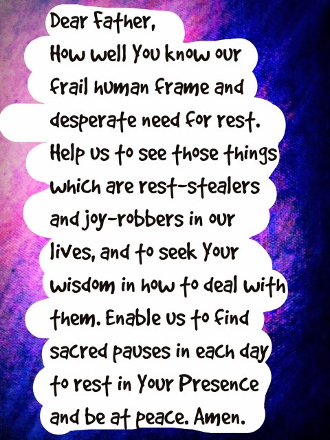 At this early stage I can already see the type of rest God has in mind for us is so much more than a Sabbath break in our week. It’s more than ceasing from physical activity, putting our feet up, taking a nap or being on vacation.