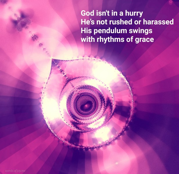 God isn’t in a hurry. He’s not rushed or harassed. His pendulum swings restfully with rhythms of grace. God simply longs for us to turn to Him, become rested and refuelled, sense Holy Love’s desire to flood our hearts with Hope instead of haste.